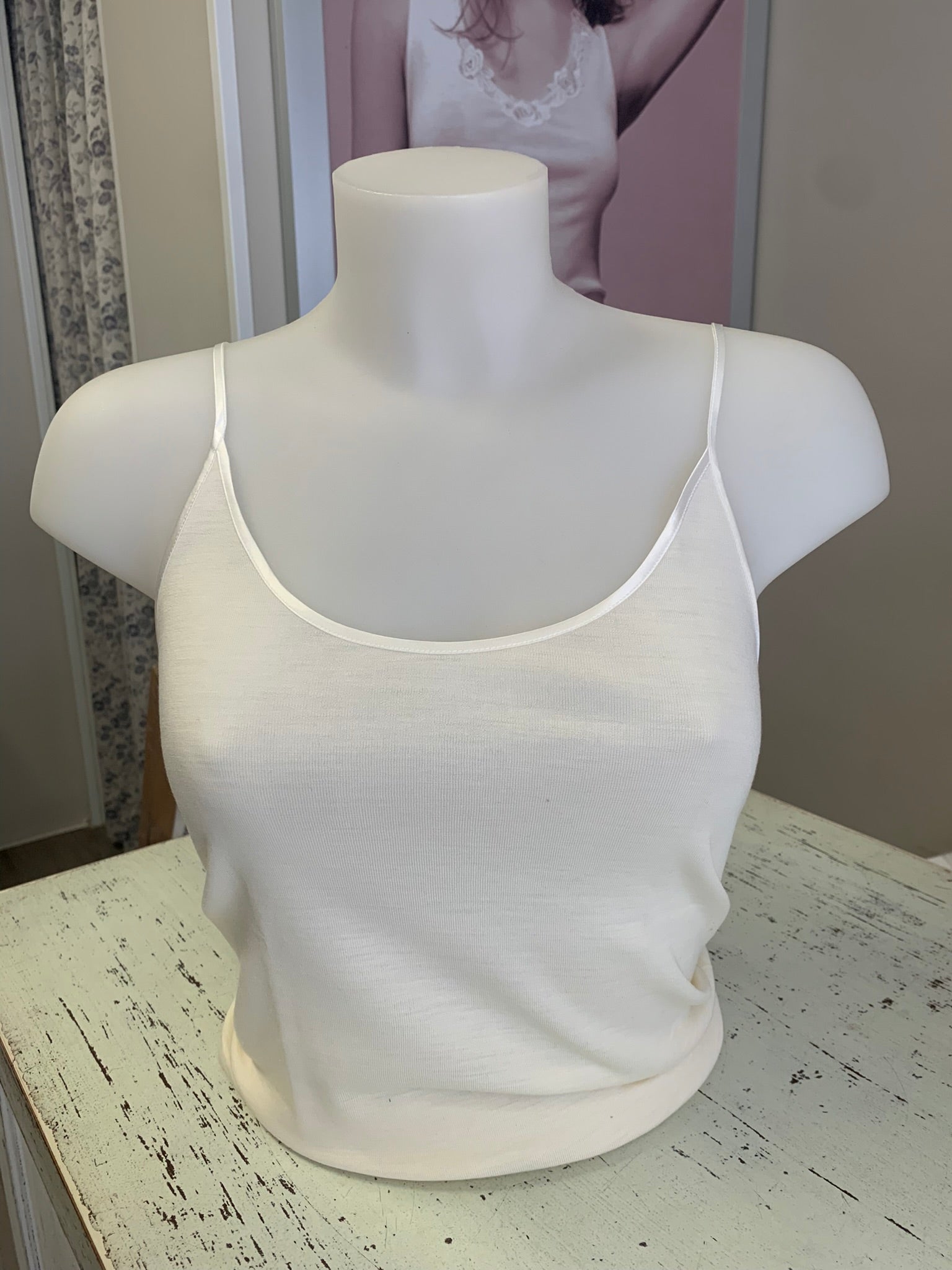 Questa canotta è un capo essenziale per il tuo intimo termico. Realizzata nel prezioso misto lana seta, offre eccellente isolamento e morbidezza. Si distingue per il suo scollo girocollo o a V, ideale per vestire con discrezione sotto maglioni e abiti a collo alto, pur mantenendo un delicato bordo in pizzo.