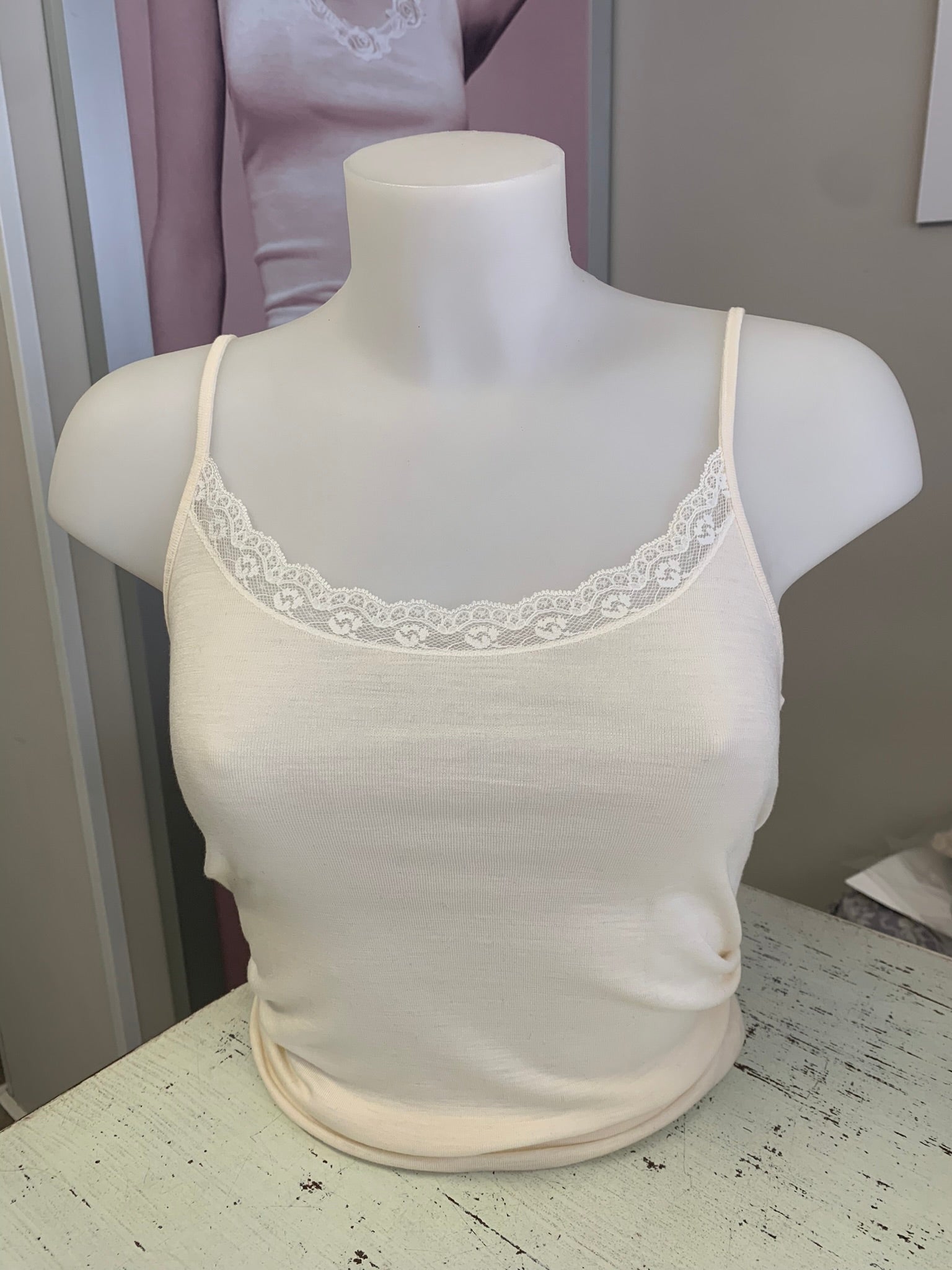 Lisanza canotta Lana Seta V - Pizzo a Fascia Ricamata (Art. 1627)