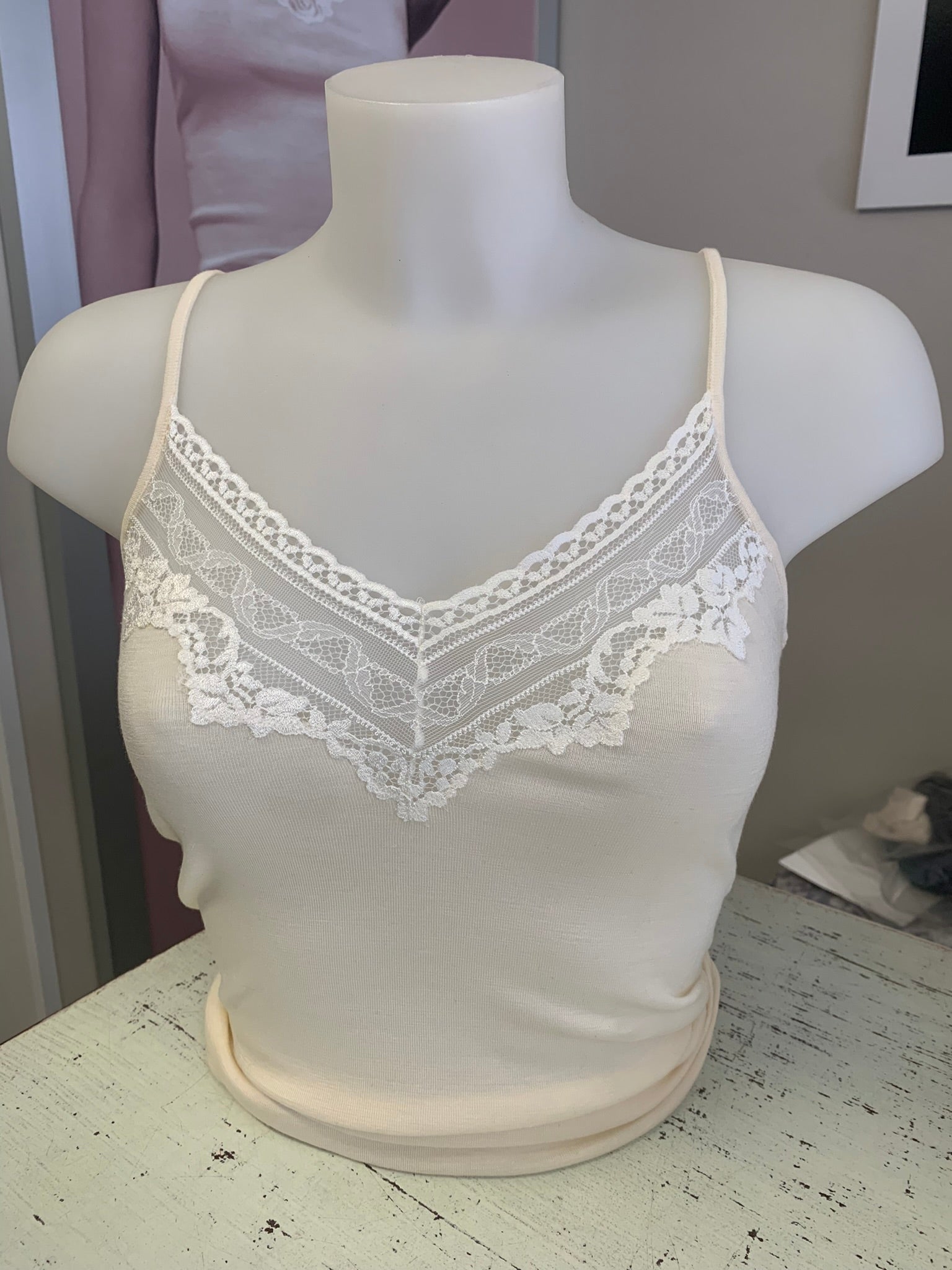 Lisanza canotta lana seta a V con bordo pizzo sottile ultra fine (Art. 1134)