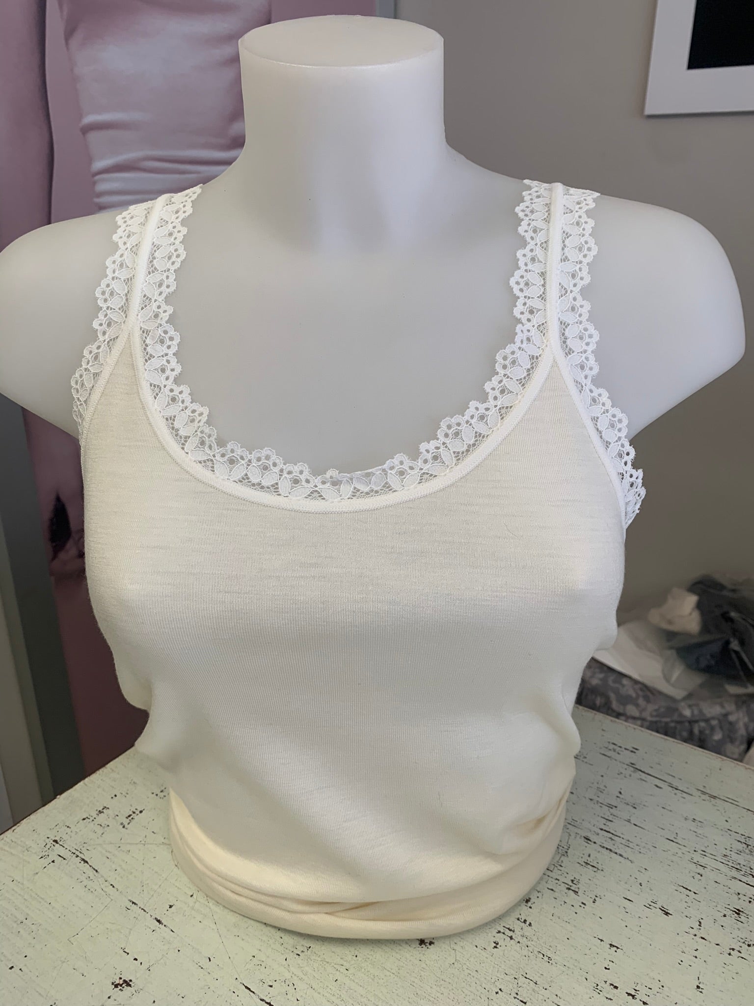 Lisanza canotta lana seta a V con pizzo largo ornamentale (Art. 1638)
