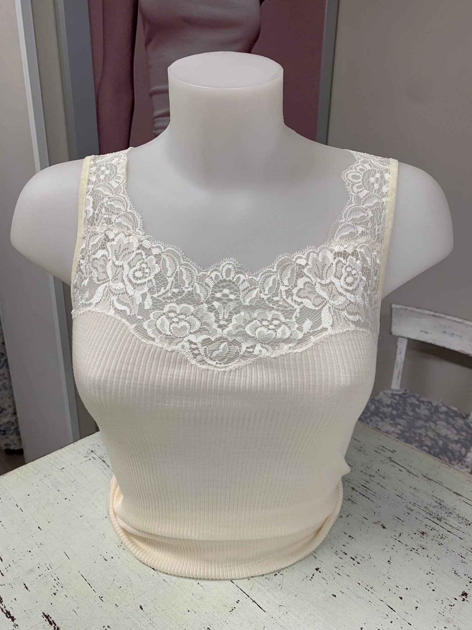 Fraly canotta lana seta costina pizzo elastico scollo quadrato art DF 7148