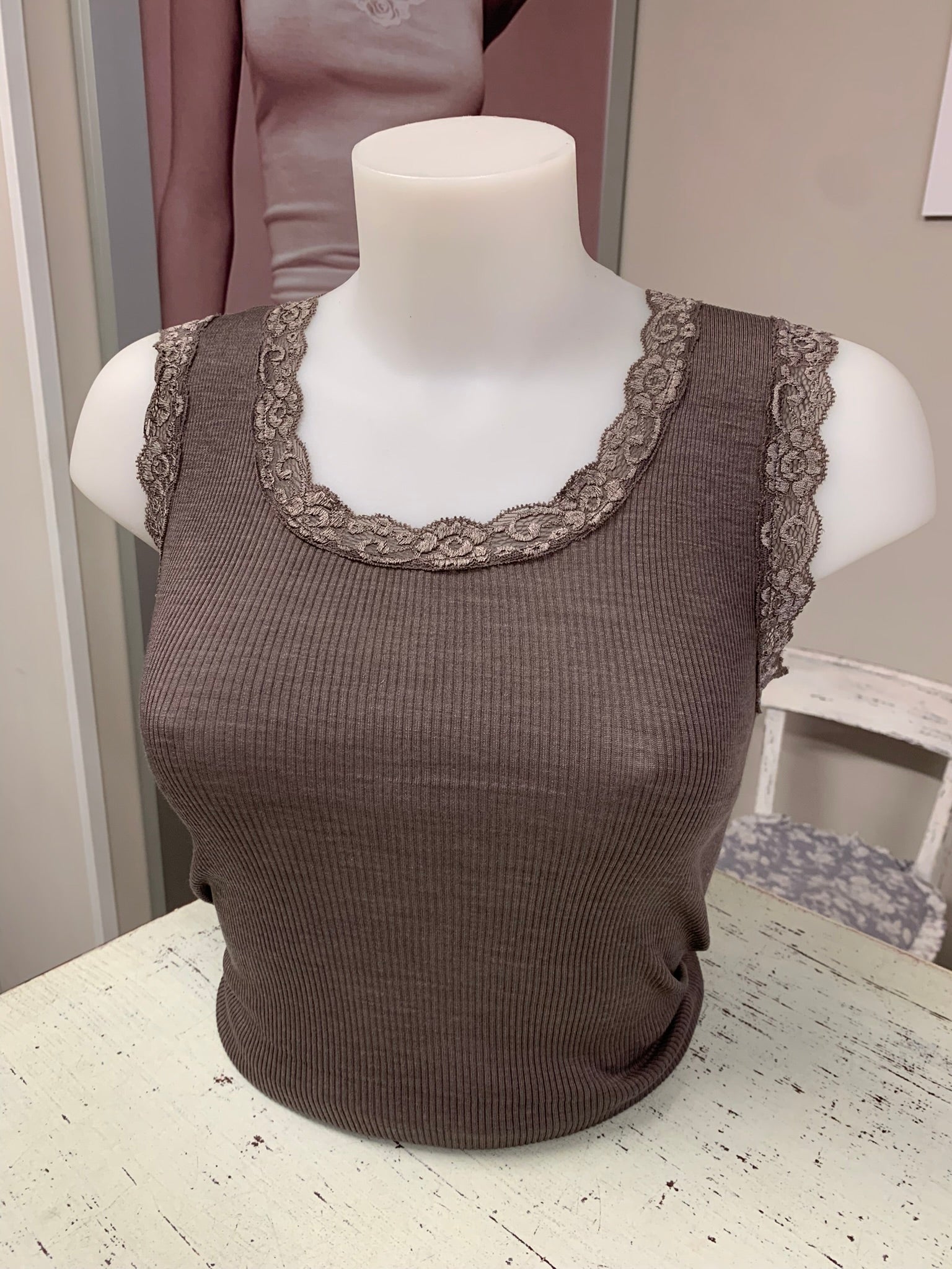 Fraly canotta spalla larga costina lana seta pizzo elastico art DF6901
