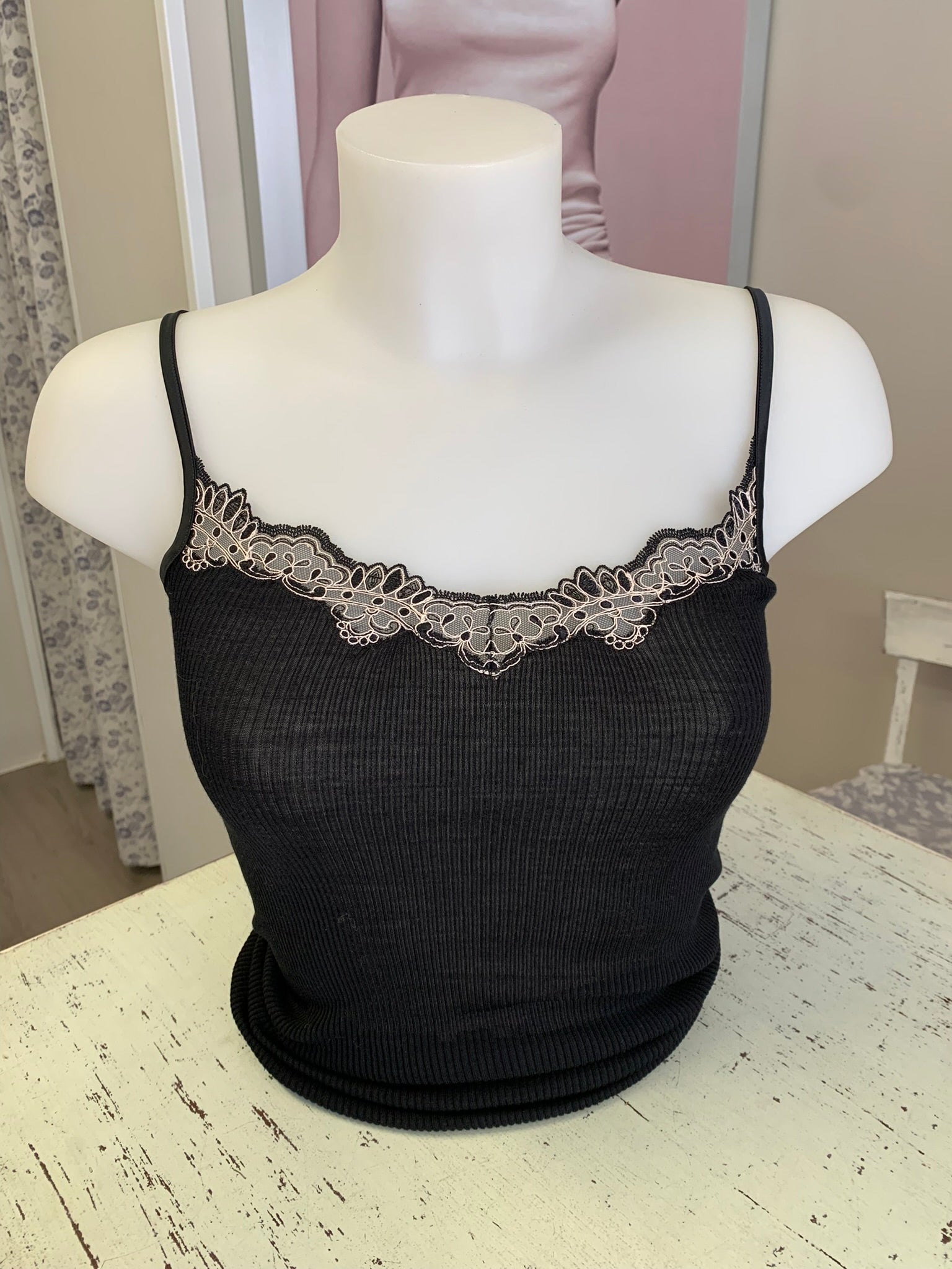Canotta con pizzo bicolore e spallina regolabile